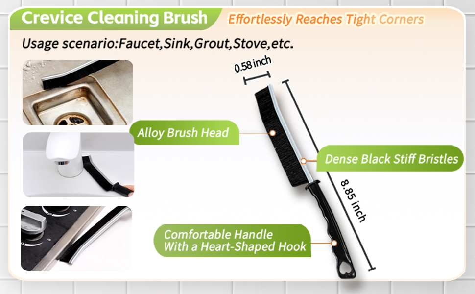 【Ergonomic Comfort & Easy Storage】 Designed with your comfort in mind! Each brush features an ergonomic handle that fits comfortably in your hand, reducing fatigue and making cleaning tasks quicker and easier. Convenient hanging holes at the end of each tool allow for easy storage and quick drying, keeping your cleaning supplies organized and accessible.
