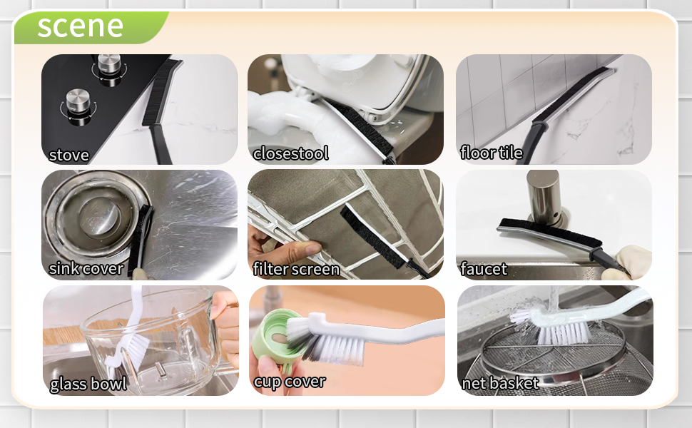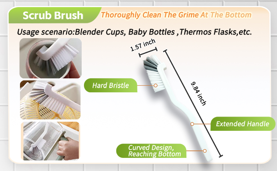 【Versatile & Multi-Purpose Cleaning】 The perfect solution for cleaning all tricky spots in your home! Effortlessly clean kitchen sinks, bathroom tiles, grout lines, window tracks, baseboards, appliances, blender bottles, baby bottles, coffee mugs, thermos flasks, and more. Ideal for daily household chores and deep cleaning projects, this brush set is a must-have for every home.