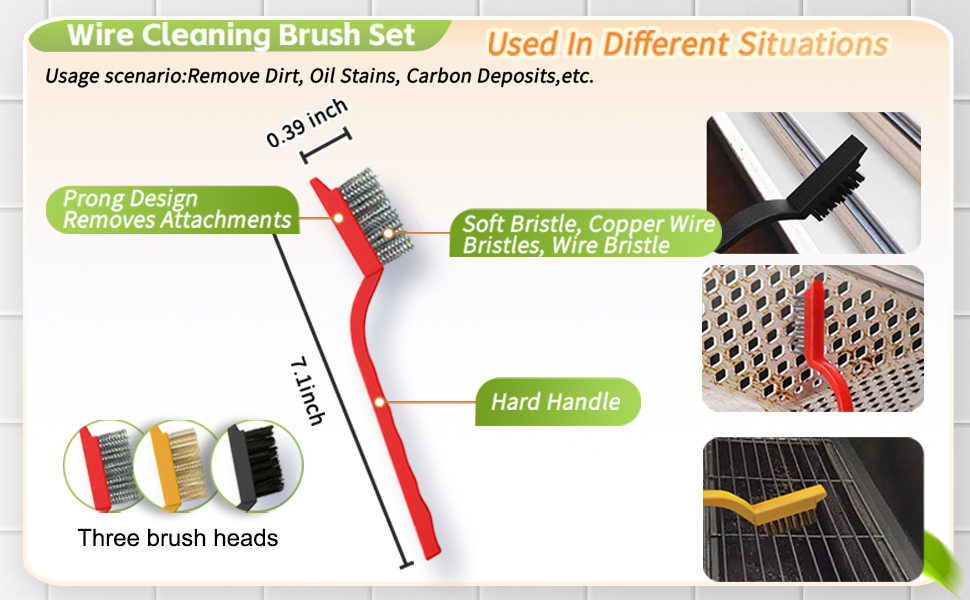 【Premium Quality & Durable Materials】 Crafted from high-quality, durable PP bristles and sturdy materials, our cleaning brushes are designed for long-lasting performance. The wire brushes feature brass, stainless steel, and nylon bristles to handle various cleaning needs: brass for polishing metal surfaces, steel for rust and corrosion removal, and nylon for delicate surfaces. Simply rinse and air dry after use to maximize their lifespan.