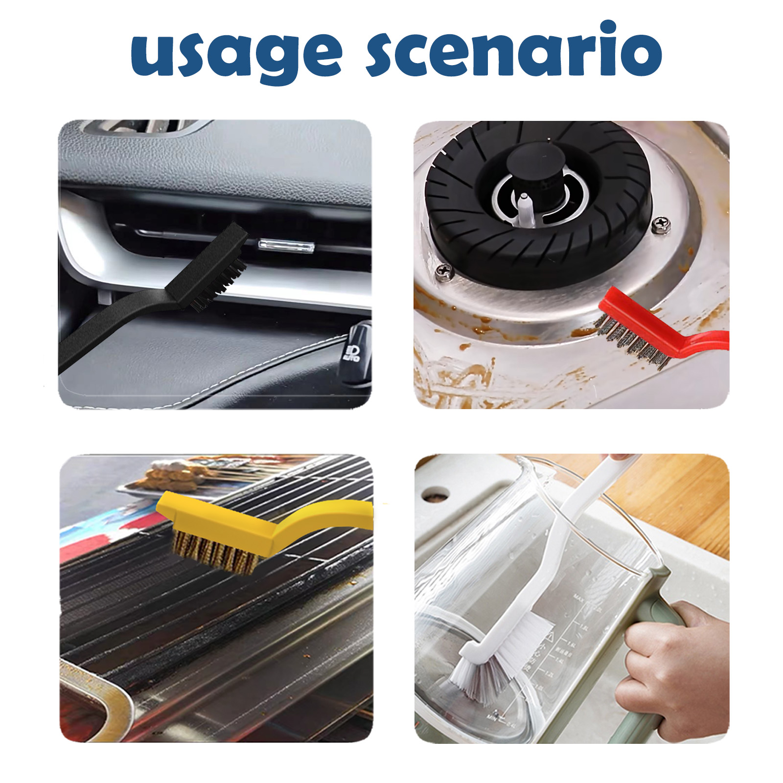 【8 Piece Ultimate Crevice Cleaning Brush Set】 Tackle every corner of your home effortlessly with our versatile cleaning brush kit! Includes 3 Crevice Brushes (ideal for narrow gaps and tight spaces), 2 Right-Angle Scrub Brushes (perfect for bottles, cups, and hard-to-reach interiors), 3 Wire Brushes (brass, steel, nylon) for tough cleaning tasks.